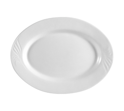 Roosevelt Platter, 11-3/4"L x 8-5/8"W, oval, embossed, dishwasher, oven and microwave safe, porcelain, Super White (Sold by case)