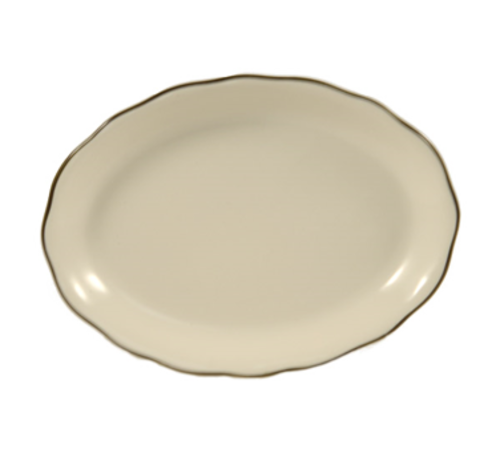 Seville Platter, 12-5/8"L x 9-1/4"W x 1-1/2"H, oval, scallop edge, dishwasher, oven and microwave safe, stoneware (ceramic), Black Band/American White (Sold by case)