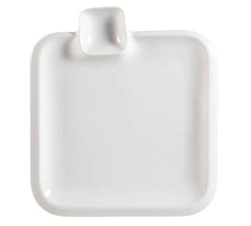 Party Collection Plate, 9"L x 8"W x 3/4"H, square, with sauce compartment, dishwasher, oven and microwave safe, porcelain, Bone White (Sold by case)