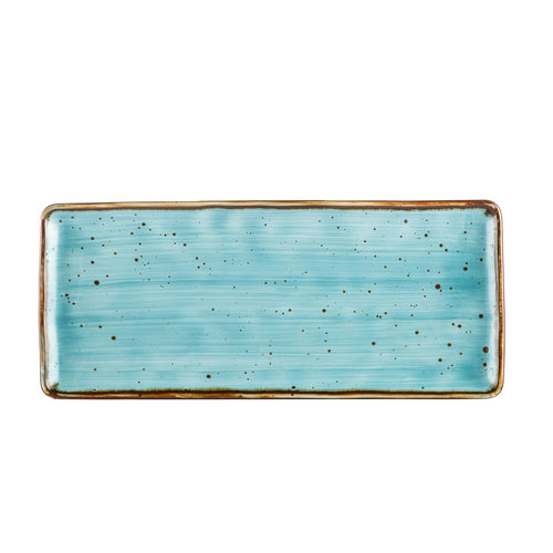 Tucson Platter, 12"L x 5-1/8"W x 1/2"H, rectangular, dishwasher, oven and microwave safe, porcelain, reactive glaze, Turquoise (Sold by case)