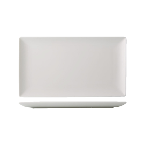 Victoria Platter, 13-1/2"L x 7-7/8"W x 1"H, rectangular, deep, coupe, glazed foot, dishwasher, oven and microwave safe, porcelain, Bone White (Sold by case)