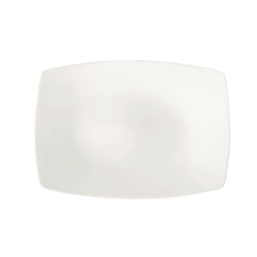 Platter, 13" x 9", rectangular, rolled edge, geometric line, scratch/chip resistant, microwave, dishwasher & oven safe up to 380°F, porcelain, Corona, Asia, bright white (Stocked Item)