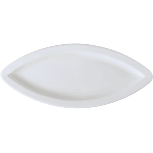 Platter, 14-1/4" x 6", cat's eye shape, rolled edge, scratch/chip resistant, microwave, dishwasher & oven safe up to 380°F, porcelain, Corona, Elegance, bright white (Special Order Item- 8 to 10 weeks lead time, minimum order = 43 dozen)