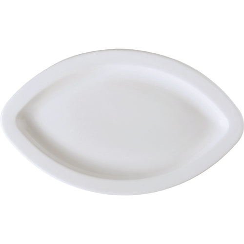 Platter, 12-3/4" x 7-3/4", cat's eye shape, rolled edge, scratch/chip resistant, microwave, dishwasher & oven safe up to 380°F, porcelain, Corona, Elegance, bright white (Stocked Item)