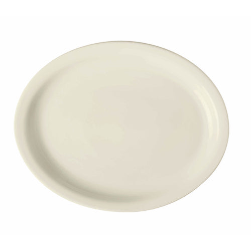 Platter, 11-3/4" x 9-2/3", oval, narrow rim, rolled edge, scratch/chip resistant, microwave, dishwasher & oven safe up to 380°F, porcelain, Corona, Americana, off white (Made to Order item- 6 to 8 weeks lead time, minimum order = case quantity)