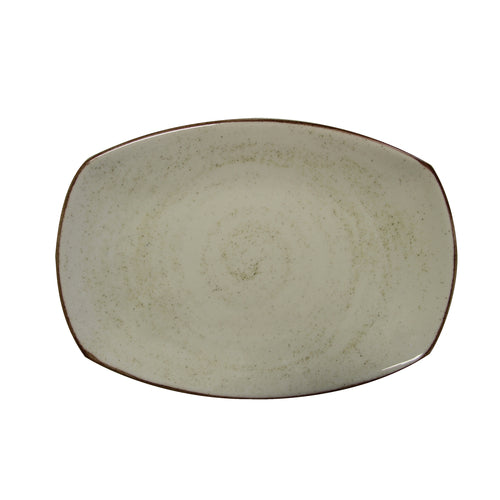 Platter, 13-7/9" x 9-2/3", rectangular, rolled edge, scratch/chip resistant, microwave, dishwasher & oven safe up to 380°F, porcelain, Corona, Artisan, beige (Stocked Item)