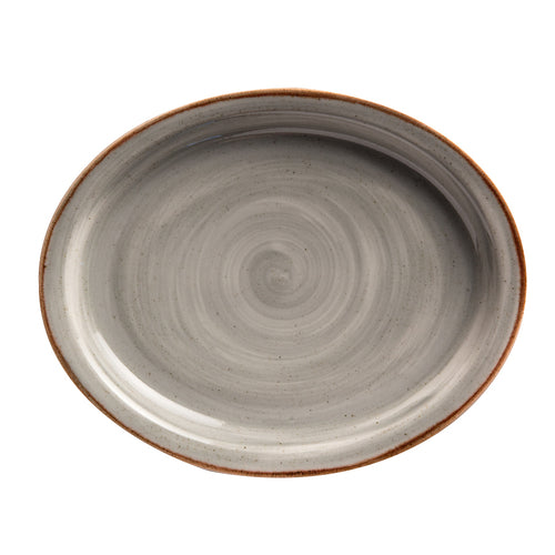Platter, 11-3/4" x 9-2/3", oval, narrow rim, rolled edge, scratch/chip resistant, microwave, dishwasher & oven safe up to 380°F, porcelain, Corona, Artisan, grey (Made to Order item- 6 to 8 weeks lead time, minimum order = case quantity)