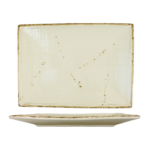 Platter, 10-3/4" x 7-3/4", rectangular, embossed, speckled, rolled edge, fully vitrified, microwave & dishwasher safe, lead free, stoneware, khaki, Savannah™
