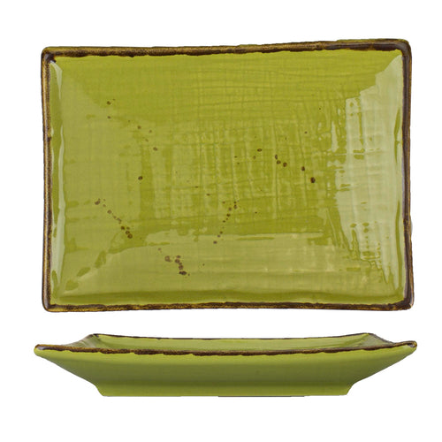 Platter, 6-3/4" x 4-3/4", rectangular, embossed, speckled, rolled edge, fully vitrified, microwave & dishwasher safe, lead free, stoneware, basil, Savannah™