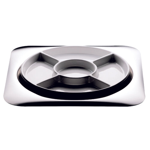 Hors D'oeuvre Tray, 2-piece, includes: (1) 12-1/4" dia., 5-compartment round porcelain insert & (1) square, 18/10 stainless steel, base tray, dishwasher safe, Coccola