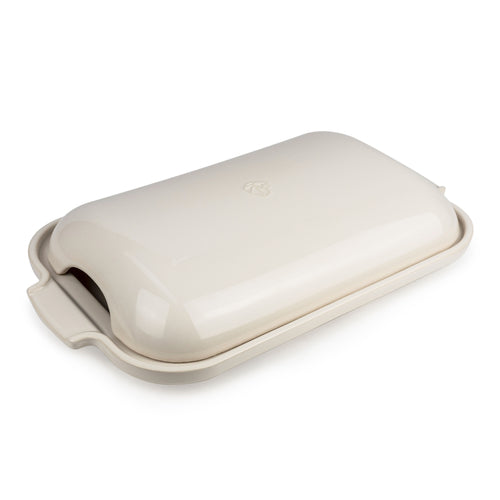 Appolia Ecru Bread Sampler Pan, 14-3/4"L (37.5 cm), with cover, oven safe, ceramic