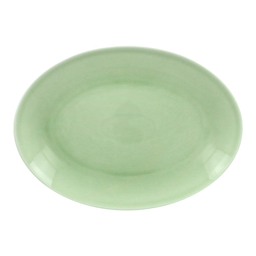 Vintage Platter, 10-1/4" x 7-1/2", oval, shock resistant, lead-free, microwave & dishwasher safe, non-porous glaze, porcelain, crackle texture, green