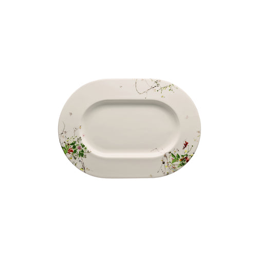 Platter, 13-1/2" x 9-1/2", oval, scratch-resistant, microwave and dishwasher safe, bone china, white, with floral decoration, Rosenthal, Fleurs Sauvages