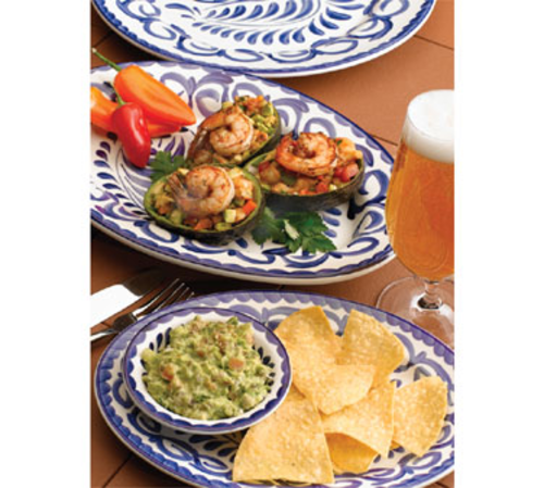Platter, 12-1/4" x 9-1/8", oval, rolled edge, fully vitrified, hand painted, Anfora, Puebla Blue (minimum = case quantity) (stock item)