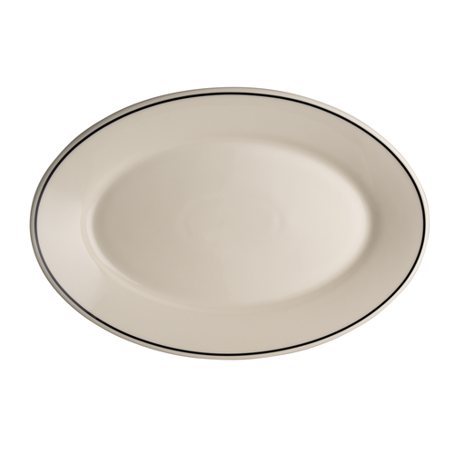 Platter, 9.5" x 6.75", oval, rolled edge, china, white, Homer, Ivory, Black Line (stock item)