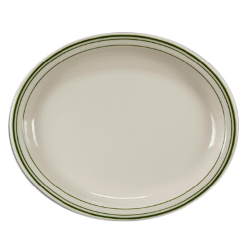 Platter, 9-3/4" x 8", oval, narrow rim, Homer, Green Band (stock item)