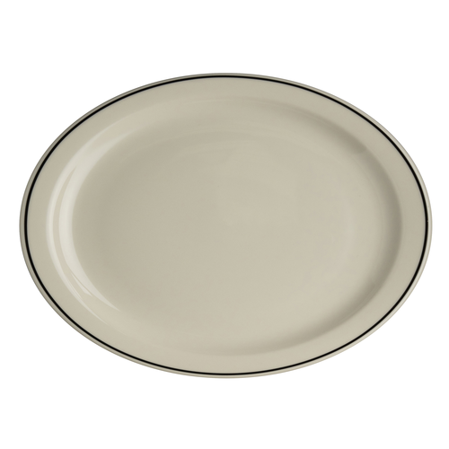 Platter, 11.38" x 9", oval, narrow rim, china, white, Homer, Ivory, Black Line (stock item)