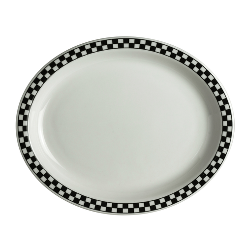 Platter, 12-3/8" x 10", oval, narrow rim, Homer, Black Checkers (stock item)