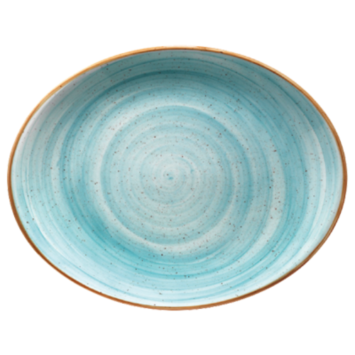Bonna Platter, 12-1/4" x 9-1/2", oval, coupe, rolled edge, hand painted, chip and scratch resistant, microwave and dishwasher safe, porcelain, Moove, Aqua (priced by each, packed 6 each per case, case cannot be broken)