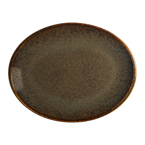 Bonna Platter, 12-1/4" x 9-1/2", oval, coupe, rolled edge, chip and scratch resistant, microwave and dishwasher safe, porcelain, reactive glaze, Ore, Tierra, brown (priced by each, packed 6 each per case, case cannot be broken)