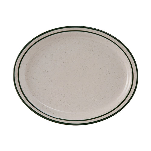 Platter, 13-1/4" x 10-1/2", oval, narrow rim, microwave & dishwasher safe, oven proof, fully vitrified, lead-free, ceramic, Emerald, American White/Eggshell with Green Speckle