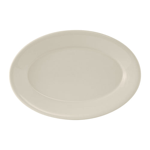 Platter, 14-1/8" x 10-1/4", oval, wide rim, rolled edge, microwave & dishwasher safe, oven proof, fully vitrified, lead-free, ceramic, Reno, American White/Eggshell