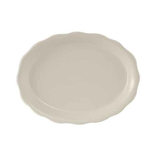 Platter, 12-5/8" x 9-3/8", oval, scalloped edge, microwave & dishwasher safe, oven proof, fully vitrified, lead-free, ceramic, Shell, American White/Eggshell