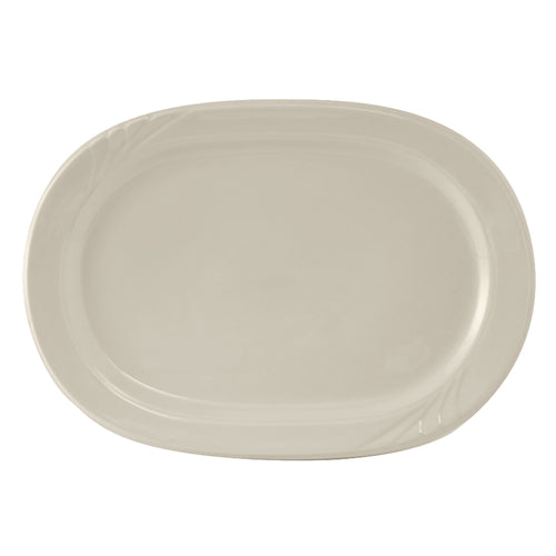 Racetrack Platter, 10-3/8" x 7-1/2", oblong, wide rim, embossed, microwave & dishwasher safe, oven proof, fully vitrified, lead-free, ceramic, TuxCare®©, Healthcare, Monterey, American White/Eggshell