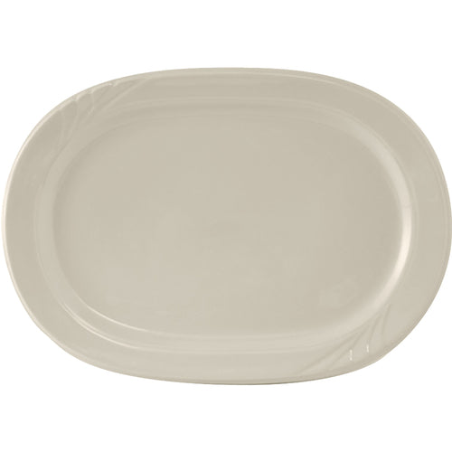 Racetrack Platter, 11-3/4" x 8-1/2", oblong, wide rim, embossed, microwave & dishwasher safe, oven proof, fully vitrified, lead-free, ceramic, TuxCare®©, Healthcare, Monterey, American White/Eggshell