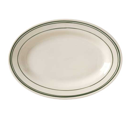Platter, 10-3/8", wide rim, rolled edge, microwave & dishwasher safe, vitrified china, Del Mar Green Collection, American White