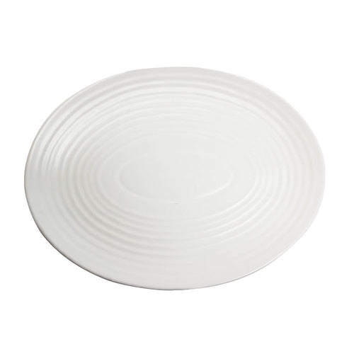 Platter, 9-1/2", oval, coupe, polished foot, subtle embossing, matte white, Premium, Organics, Elements