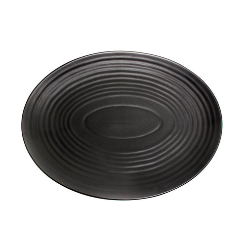 Platter, 11-1/2", oval, coupe, polished foot, subtle embossing, matte black, Premium, Organics, Elements