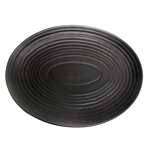 Platter, 13-1/4", oval, coupe, polished foot, subtle embossing, matte black, Premium, Organics, Elements