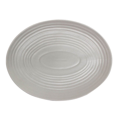 Platter, 13-1/4", oval, coupe, polished foot, subtle embossing, matte gray, Premium, Organics, Elements