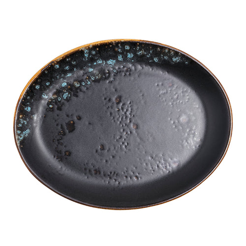 Platter, 11", oval, coupe, hand painted, fully glazed foot, scratch resistant, aluminum oxide reinforced body, porcelain, matte black/sky blue reactive glaze, Premium, London Moonstone Collection
