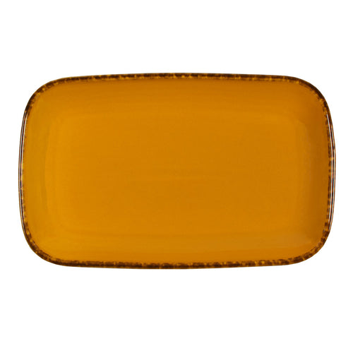Platter, 14” x 9” x 1-1/4”, rectangular, hand painted rim, porcelain, gloss finish, Pumpkin, Universal, Woodland Collection
