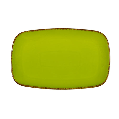 Platter, 12-1/4” x 7-1/2” x 1-1/8”, rectangular, hand painted rim, porcelain, gloss finish, Sage, Universal, Woodland Collection