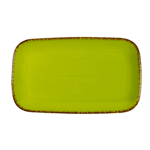 Platter, 9-5/8” x 5-5/8” x 1, rectangular, hand painted rim, porcelain, gloss finish, Sage, Universal, Woodland Collection