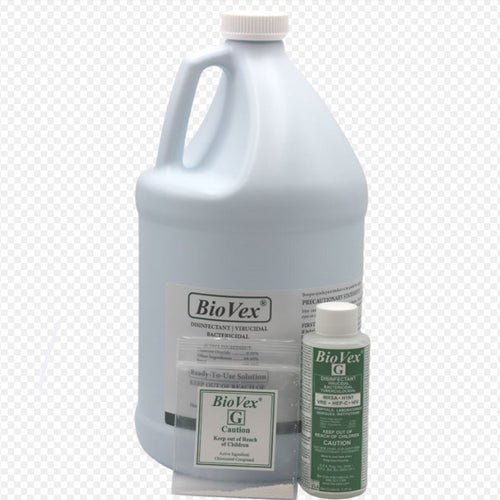 Go Clean Germbuster BioVex Disinfectant, includes: (12) bottles of pre-measured EPA certified organic concentrate, (12) packets of dry activation crystal salts, and (1) 1 gallon jug, kills all viruses, bacteria, spores and mold, safe for use around humans, 1 year shelf life (14 days after opened/activated), Made in USA