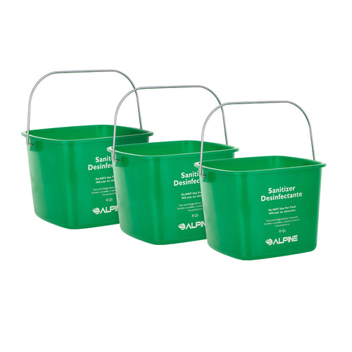 Sanitizing/Cleaning Pail, 8 qt., 9-1/2"W x 7-1/2"D x 10-3/4"H, interior graduation measures in quart & liter, no rust handle, plastic, green (pack of 3)