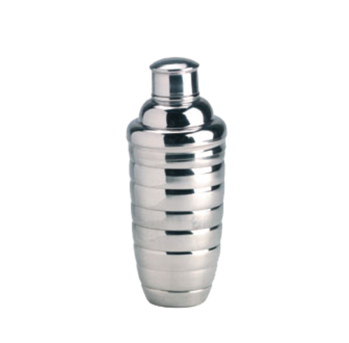 Beehive Cocktail Shaker, 24 oz., 3-1/2" dia. x 8-7/8"H, 3-piece, shaker, strainer top and jigger cap, stainless steel, mirror finish