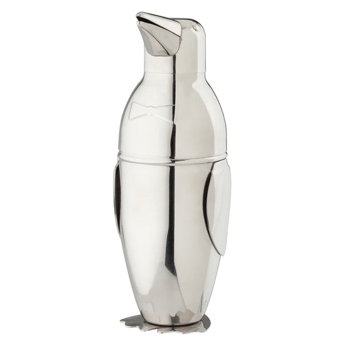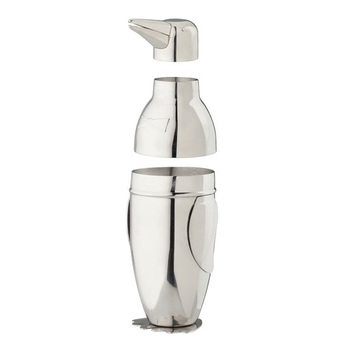 HIC Penguin Cocktail Shaker, 9", 18 oz., 9", penguin design, stainless steel