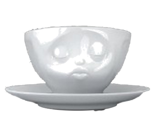 Cup, 6.6 oz., 5-3/4" dia. (incl. handle) x 2-3/4"H, embossed kissing face, porcelain, white, Expressive Faces by Tassen (use with saucer 143000)