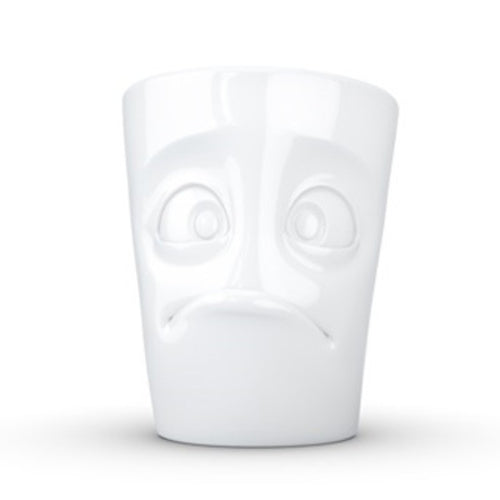 Mug, 11.83 oz., 3-2/3" dia. x 4-1/2"H, embossed baffled face, porcelain, white, Expressive Faces by Tassen