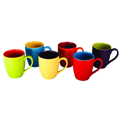 BIA Cordon Bleu® Coffee Mug Set, 15 oz., 3-1/4" dia. x 4-1/4"H, with handle, dishwasher/microwave/oven safe, stoneware (ceramic), (gift boxed) (set of 6 each, assorted two tone colors (1) each: red/blue, blue/yellow, yellow/purple, purple/green, green/orange & orange/red) (2 sets minimum order) (NET)