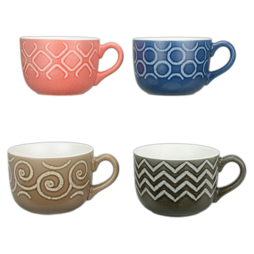 BIA Cordon Bleu® Mug, 16 oz., 6-1/4"L x 4-3/4"W x 3-1/4"H, with handle, dishwasher/microwave/oven safe, stoneware (ceramic), semi-matte, assorted patterns (4 each minimum order) (NET)