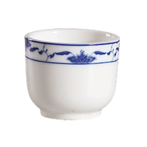 Blue Lotus Chinese Style Tea Cup, 4-1/2 oz., 2-3/4" dia. x 2-3/8"H, round, unhandled, dishwasher, oven and microwave safe, porcelain, Blue/Bone White (Sold by case)