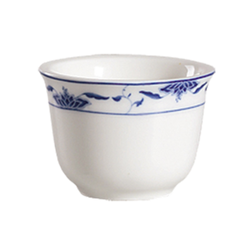Blue Lotus Chinese Style Tea Cup, 5 oz., 3" dia. x 2-1/4"H, round, unhandled, dishwasher, oven and microwave safe, porcelain, Blue/Bone White (Sold by case)