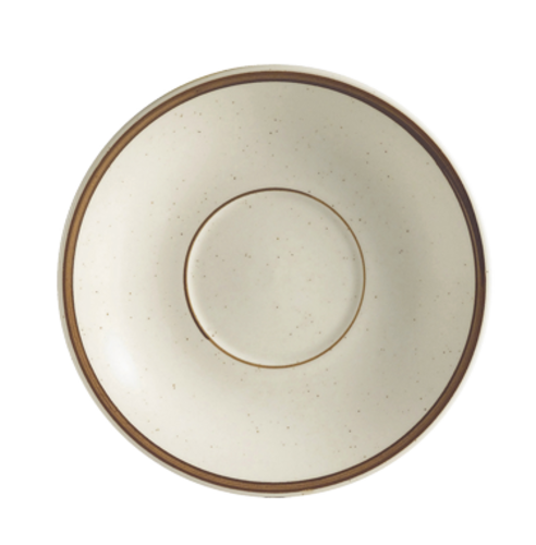 Arizona Saucer, 6" dia. x 1"H, round, dishwasher, oven and microwave safe, stoneware (ceramic), Brown Rim/Brown Speckled/American White (Sold by case)