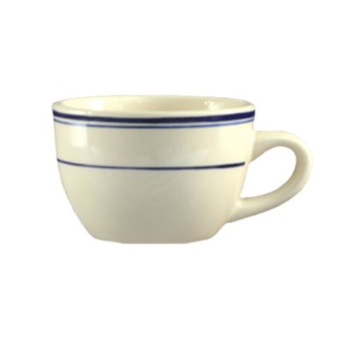 Blue Line Coffee Cup, 7 oz., 3-3/4" dia. x 2-1/2"H, round, dishwasher, oven and microwave safe, stoneware (ceramic), Blue Band/American White (Sold by case)